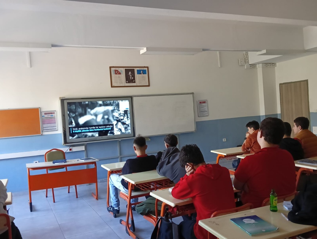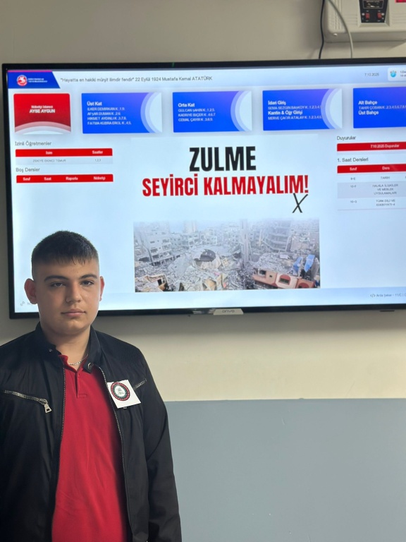 Okulumuzda öğretmen ve öğrencilerimizin katılımıyla Filistin halkına destek ve farkındalık etkinliği gerçekleştirildi. Program kapsamında, Gazze’de yaşanan insani krize dikkat çekilerek barış, vicdan ve kardeşlik temaları vurgulandı. Etkinlik boyunca öğrencilerimiz, hazırladıkları pankartlar ve konuşmalarla Filistin’deki mazlum halkın sesi oldular. Bu anlamlı etkinlikte emeği geçen tüm öğretmen ve öğrencilerimize teşekkür ediyor, Filistin’de adaletin ve huzurun hâkim olduğu bir dünyanın umuduyla birlik olmaya devam ediyoruz.